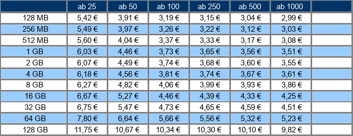 Preise je USB-Stick