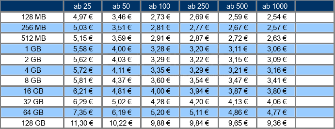 Preise je USB-Stick