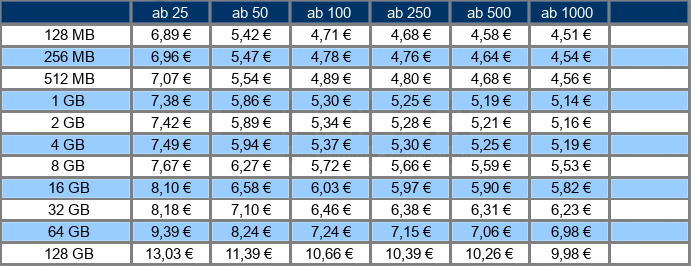 Preise je USB-Stick