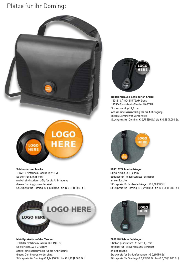 Doming Domings werden in der Regel digital auf Papier oder Folie gedruckt. Der einzigartige 3D-Effekt entsteht durch die separat aufgetragene Harzschicht, die den transparenten „Dom“ bildet. Domings bestechen durch eine sehr hochwertige Optik und bieten maximale Flexibilität. Die von uns verwendeten Domings sind im Zusammenhang mit Taschen ausreichend Wasser- und UV-resistent. |